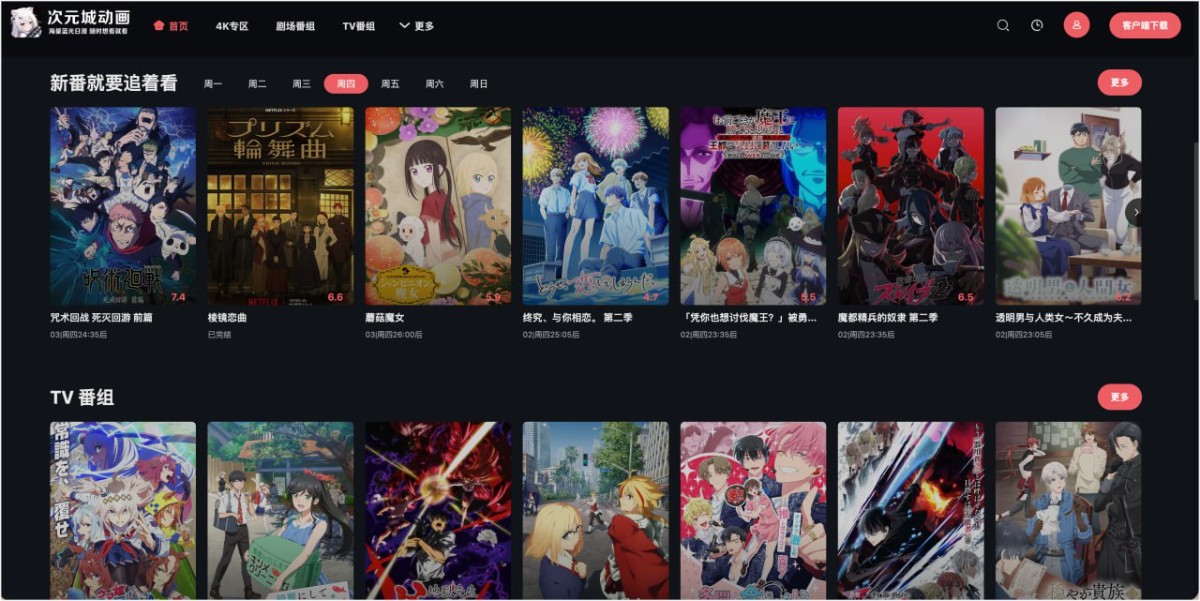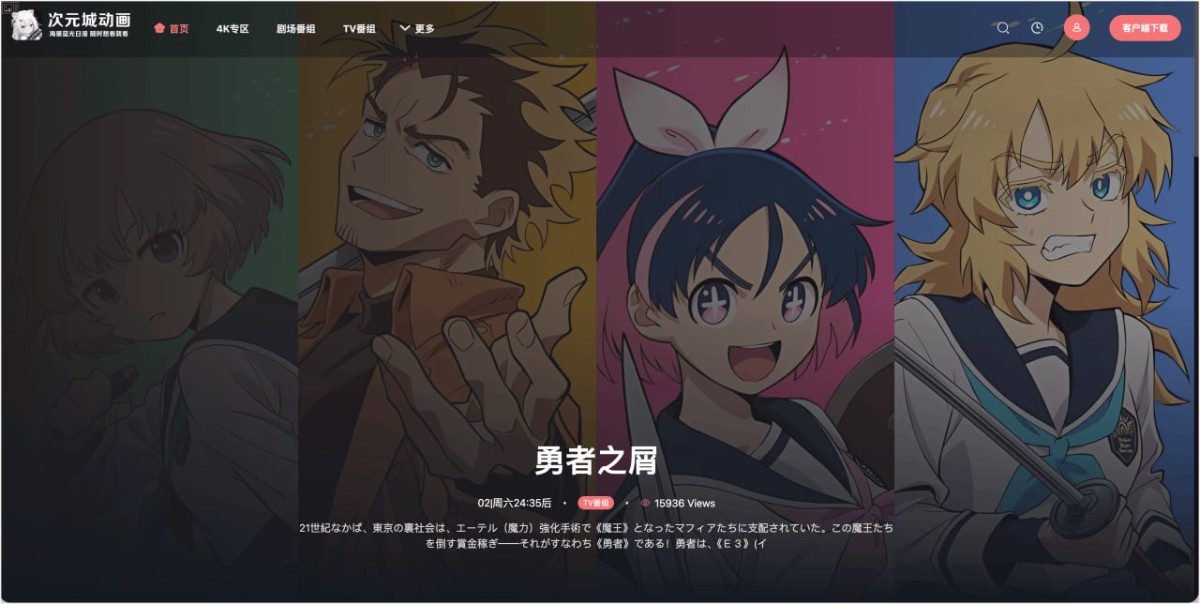 次元城动画:在线动漫番剧网站,资源很全,支持网页,Android和pc客户端。 同时客户端支持弹幕,不过网站会检测代理,需要关闭VPN访问