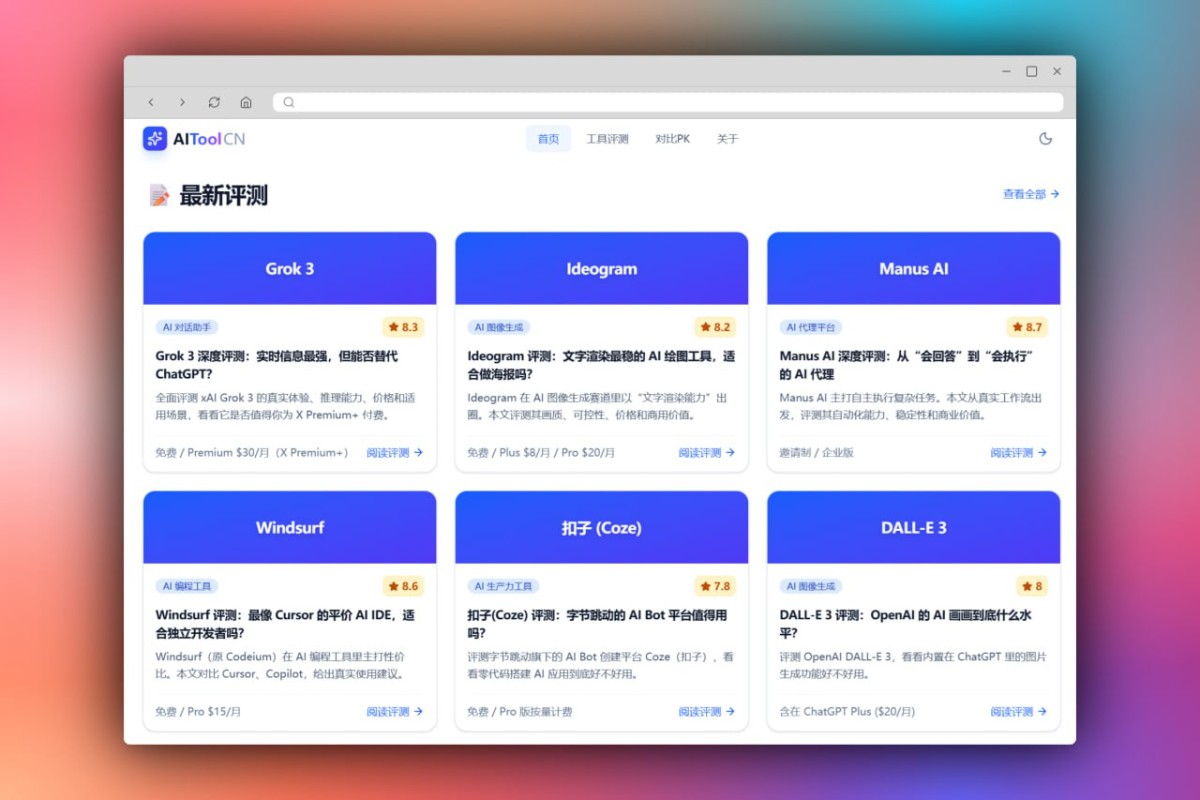 一个专注 人工智能工具测评、对比与推荐 的中文网站,提供大量 AI 应用的